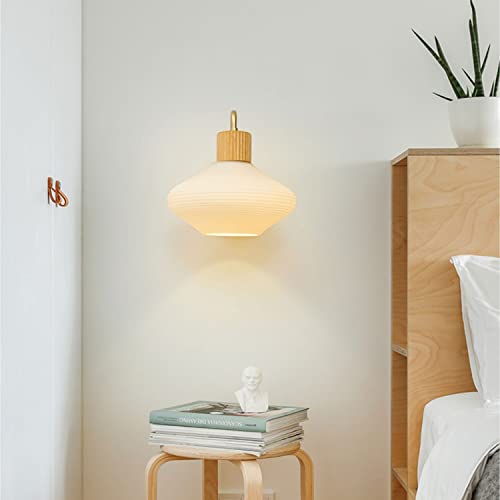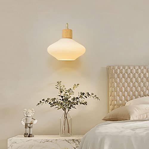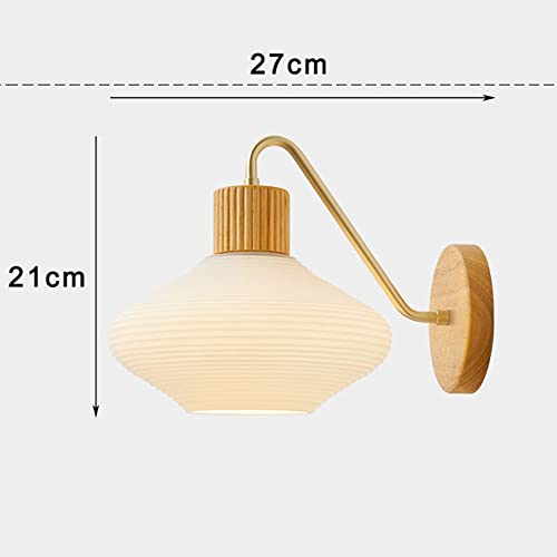 RXPVUXE Applique da parete in legno nordico Lampada da parete in vetro latte Lampada da comodino in oro Lampada da parete, Illuminazione da parete moderna in legno Applique Wabi-sabi cablate per camer
