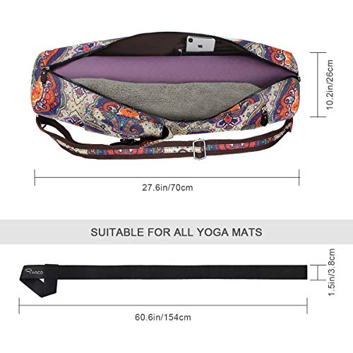 Ryaco Borsa Yoga, Borsa per Tappetino da Yoga con Multi Tasche Portaoggetti, Cinghia Regolabile, Facile Accesso (Fiori di Anacardi)