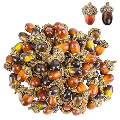 RYAN 100 Pezzi Ghiande Artificiali Mini Naturale Autunno Decorazioni Simulazione Ghianda per i Mestieri Domestici del Festival di Natale del Ringraziamento (2 Colori)