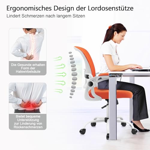 Supporto lombare regolabile in mesh. La sedia da scrivania RYANGEL convince in termini di ergonomia e comfort: Il supporto lombare regolabile in altezza garantisce un comfort ottimale per la colonna vertebrale, in combinazione con braccioli pieghevoli regolabili, questo assicura che le braccia riposino comodamente sulla schiena e le spalle siano rilassate. Questa sedia da ufficio è adatta per adulti, ragazzi e altre persone di diverse dimensioni e scenari con diverse altezze della scrivania.