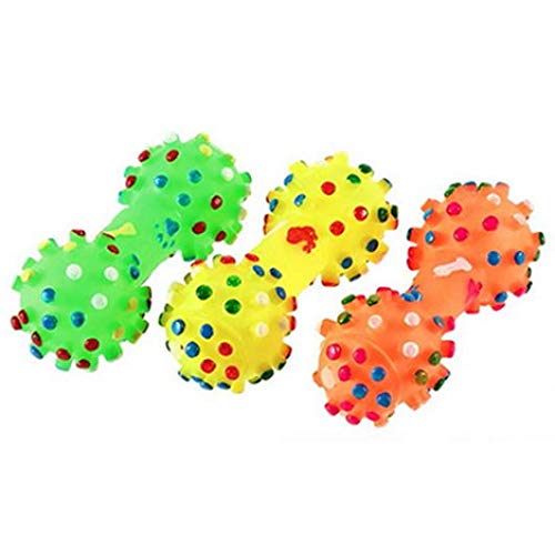 Rycnet - giocattolo per animali domestici, cuccioli di cane o gatto, a forma di manubrio/osso, a pois, in gomma, da masticare, con effetto sonoro