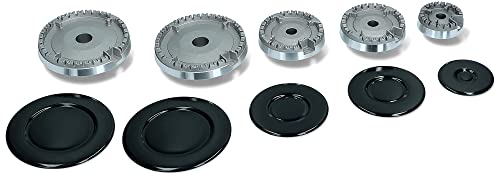 RYELDOM KIT 5 BRUCIATORI + 5 PIATTINI SMALTATI NERI ADATTI A VARIE MARCHE COME ARISTON - HOT POINT - INDESIT - FRANKE - ETC.
