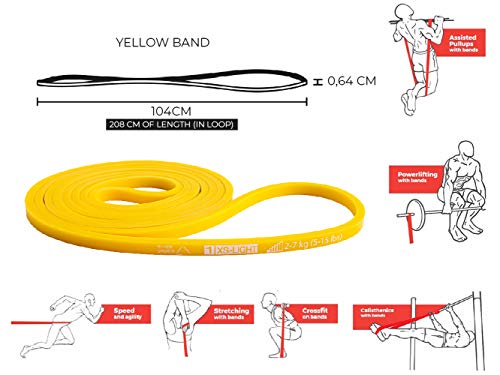 Ryher Bande Elastiche Resistenza Pull up - Elastici Fitness per trazioni casa e Palestra -Banda Allenamento per Fitness, Crossfit, Bodybuilding, Stretching (Singola: #1 Giallo -da 2 a 7kg)