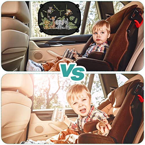 Design grazioso: sui nostri parasole c'è il design con graziosi motivi di animali, tra cui elefanti e giraffe, che piaceranno ai vostri bambini. Questo prodotto può attirare l'attenzione del bambino, evitare che il bambino si senta annoiato durante la guida. Inoltre aumenta il livello cognitivo del bambino e stimola la sua capacità di apprendimento.