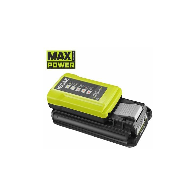 Presentazione: Batteria RYOBI 36V LithiumPlus 2,0 Ah - 1 caricabatterie RY36BC17A-120, batteria Lithium+ con gestione della carica e della scarica delle singole celle e energia regolata MaxPower venduta con il suo caricabatterie. Vantaggi: Compatibile con gli utensili a batteria Ryobi 36 volt Ricarica individuale per una maggiore autonomia gestione della carica e dello scarico delle singole celle e dell'energia regolata da MaxPower Caricabatterie in dotazione Caratteristiche: Tipo di batteria: Litio+. Numero di batterie: 1 Tensione: 36V Amperaggio: 2,0 Ah Caricabatterie in dotazione: Sì Imballaggio: 1 x RYOBI 36V LithiumPlus 2,0 Ah - 1 x RY36BC17A-120 caricabatterie
