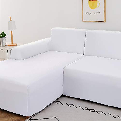 Ryoizen Copridivano con Penisola Elasticizzato Fodere Copridivano Angolare a Forma di L Chaise Longue Sia a Sinistra Sia in Destra all-Inclusive Universale(Bianco,1 Posto+ 2 Posti)