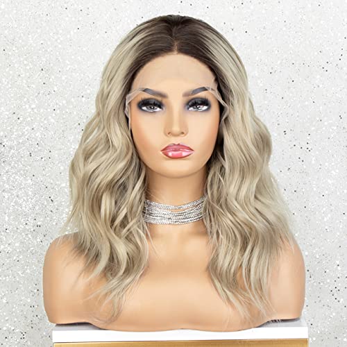 K'ryssma, parrucca sintetica a caschetto corto, con pizzo frontale, 2 tonalità di biondo sfumato, parrucca da donna, senza colla, resistente al calore