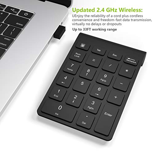 Rytaki Tastierino Numerico USB Senza Fili 2,4 GHz 22 Tasti Standard, tastierino numerico Senza Fili con Mini Ricevitore Tasto Advanced 10 per Laptop, PC, Desktop, superfici, Notebook, ECC. - (Nero)