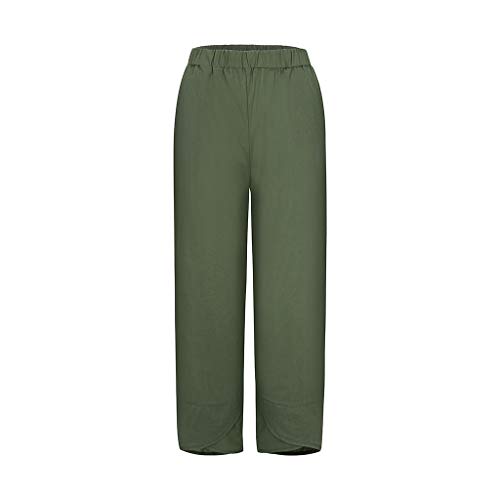 RYTEJFES Pantaloni lunghi da donna in lino, 7/8, per il tempo libero, leggeri, in lino, con tasche, taglie grandi, stampati, pantaloni da jogging da donna, pantaloni da jogging, verde militare, S