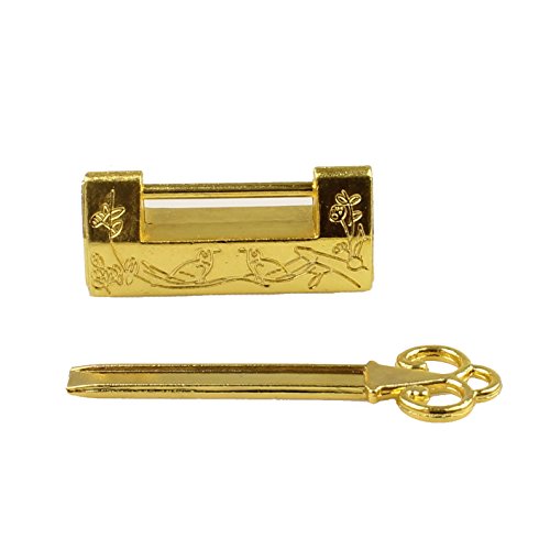 RZDEAL, mini lucchetto stile antico. Chiave e serratura con uccello intagliato. Chiusura a chiavistello vintage per portagioie, cassetti, toeletta, armadietto (oro)
