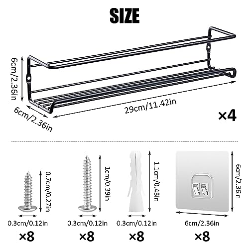RZMZBY Set di 4 Portaspezie a parete,Porta Spezie da Cucina Acciaio Inossidabile,due modalità di installazione,er la conservazione della cucina,Scaffale del bagno