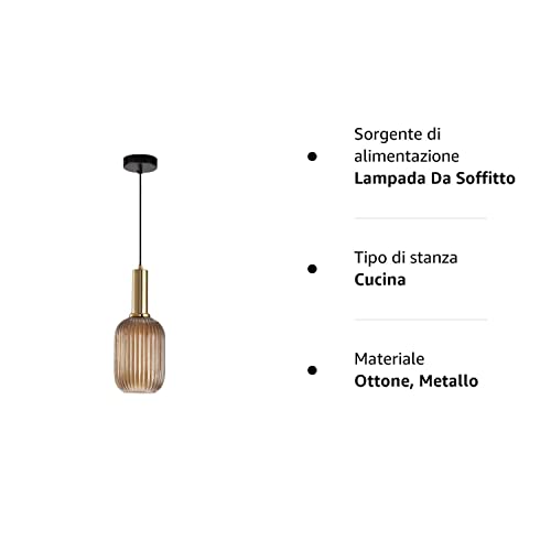 S-Cevada Lampadario a Sospensione con Paralume in Vetro Rigato, Lampada da Soffitto Moderna Retrò in Finitura Ottone, Illuminazione per Camera da letto Cucina Salon (13cm, Ambra)