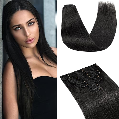 S-noilite Extension Capelli Veri Clip,8 Pezzi 18 Clip Remy Umani Extension-Capelli Veri Lisci Umani Extension Con Clip Naturali Extension Capelli Veri (25cm-50g, 01 Nero Jet)