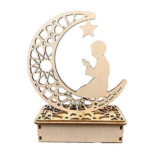 S-TROUBLE 2020 New Eid Mubarak Ramadan Fai da Te LED in Legno Decorativo Luce Luna Moschea Stella Islam Ciondolo Appeso Home Room Decorazioni per la tavola