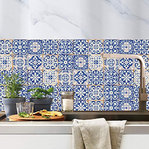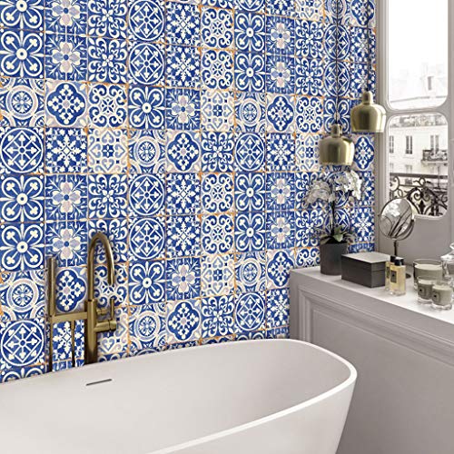 S-TROUBLE 24 pz Blu e Bianco Piastrelle di Porcellana Adesivo Peel Stick Pavimento Stickers Murali Backsplash Impermeabile Fai da Te Autoadesivo Cucina Bagno Decorazione 20x20 cm