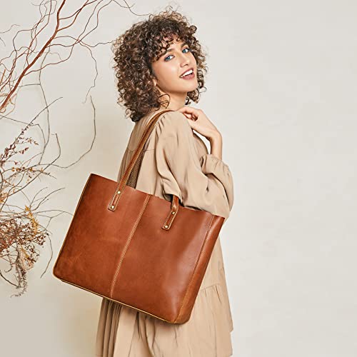 S-ZONE Borsa a tracolla in pelle di cavallo pazzo vintage da donna, Rosso marrone, L, Totes