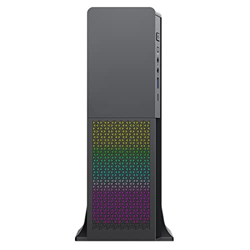 CiT S015B Micro-ATX Desktop PC Case con RGB Rainbow Front LED, 1 x 8cm Black Top Fan & CiT 300W Micro-ATX Power Supply (M-300U) Incluso | Nero