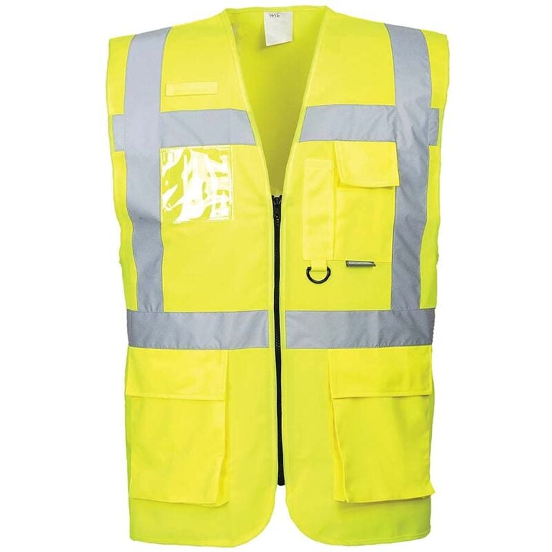Certificato CE Apertura frontale con zip Porta badge a doppio verso Anello radio Banda riflettente Portwest S476 Berlino Executive Protezione avviso Gilet EN471 giallo arancione - executive UNIONE EUROPEA / REGNO UNITO - giallo, 6XL - Morbido feel touch against skin - Altamente Traspirante - è conforme to the latest EN ISO 20471 standard - Tablet compatibile - S, M, L, XL, 2XL (36/38, 40/41, 42/44, 46/48, 50/52)