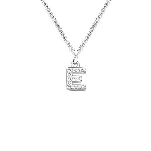 S925 Argento 26 Lettera Inglese Lettera Collana Di Cristallo Per Le Donne Ragazza Miglior Regalo (E)