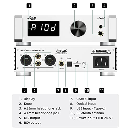 SABAJ A10d versione 2022 amplificatore per cuffie DAC uscita bilanciata XLR seconda generazione XMOS LDAC,Apt-X HD, AAC, DSD trasmissione coassiale/ottico supporto DoP64 ES9038Q2M chip con telecomando