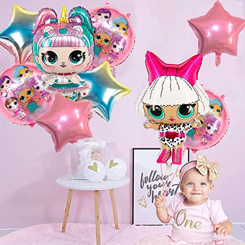 SABAN 10 Pcs Palloncini Surprise Compleanno, Bambole Palloncini Compleanno Bambina Alluminio,Set Compleanno Bambina Tweens, Surprise Doll Palloncini Festa Compleanno Bambina