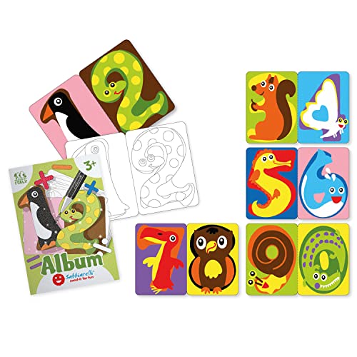 Prodotto: album Sabbiarelli con 5 diverse schede con raffiguranti numeri da colorare con la sabbia. 100% Made in Italy