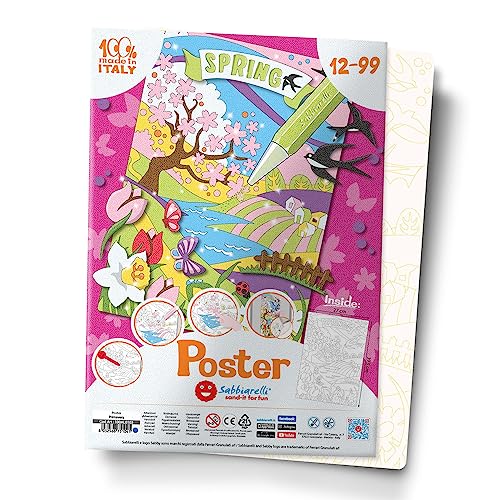 Sabbiarelli Sand-it For Fun - Poster Primavera: 1 Maxi Disegno Adesivo da Colorare con la Sabbia (non inclusa), Adatto per Adulti e Bambini, 26x40cm