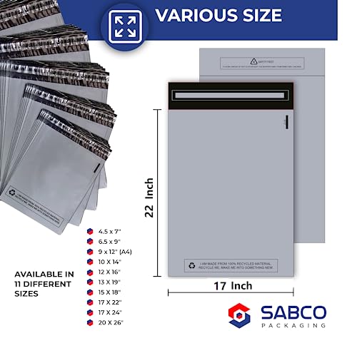 Sabco - Sacchetti per spedizione, 43,2 x 55,9 cm, autoadesivi, 20 sacchetti postali impermeabili e antistrappo, extra large in plastica grigia (43,2 x 55,9 cm, 20)