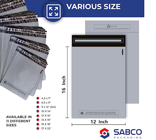 Sabco - Sacchetti per spedizioni - 30,5 x 40,6 cm autoadesivi, 100 sacchetti postali impermeabili e antistrappo - sacchetti di plastica di grandi dimensioni (30,5 x 40,6 cm, 100)