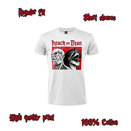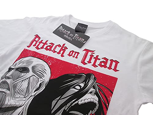 Sabor srl T-Shirt Attacco dei Giganti con Stampa Frontale Maniche Corte Bianca 100% Cotone Unisex Prodotto Ufficiale Taglie da Adulto Ragazzo (S)