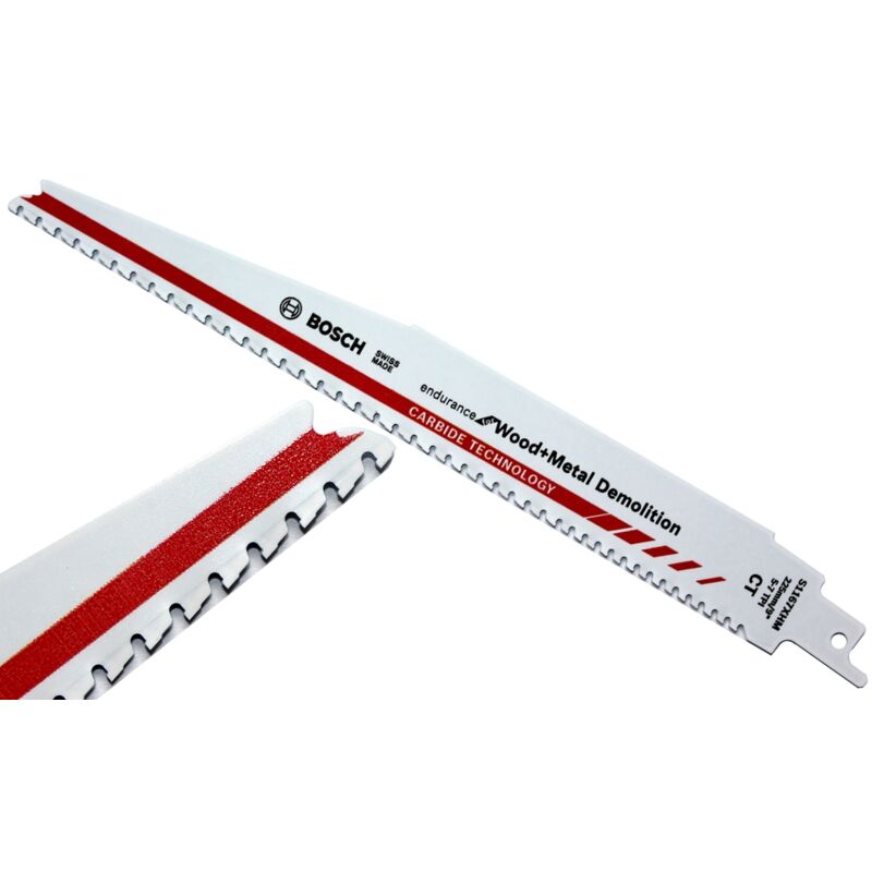 Dati tecnici: Distanza tra i denti [mm]: 3,5-5,0 Passo dei denti [TPI]: 5-7 Lunghezza totale [mm]: 225 Lunghezza totale [pollici]: 9 Larghezza [mm]: 25 Spessore [mm]: 1,25 Materiale della lama della sega: CARBURO Materiale lama per accorciamento: CTMateriale corpo: HCSMax. Capacità di taglio [mm]: 175 La lama per sega da demolizione S 1167 XHM Endurance for Wood and Metal per sega alternativa è particolarmente adatta per legno con elementi in acciaio ad alta resistenza, che consente un taglio efficace anche nei materiali più resistenti. Adatto a tutte le seghe alternative con impugnatura a forma di S. **Immagine solo a scopo illustrativo