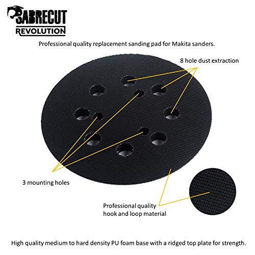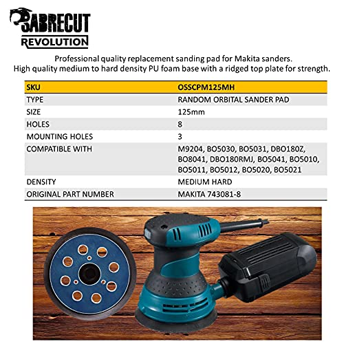 SabreCut OSSCPM125MH_2 - Cuscinetti per levigatrice orbitale a 8 fori, misura media, 125 mm, compatibili con Makita M9204 BO5030 BO5031 DBO180Z BO8041 DBO180RMJ BO5041 BO5010 BO5011 BO5012