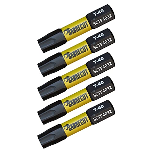 5 x SabreCut SCTP4032_5 32 mm T40 TX40 Torx a prova di manomissione Set di punte per cacciavite a impatto magnetico per impieghi gravosi compatibili con Dewalt Milwaukee Bosch Makita e altro