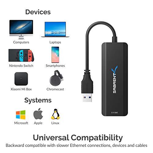 Sabrent Adattatore cavo USB type-C a Ethernet, Adattatore USB A a Ethernet, da USB a Ethernet RJ45 2.5 Gbps, da LAN a USB retrocompatibile con [10/100/1000/2500/Mbps], Cavo USB C e A incluso (NT-S25G)