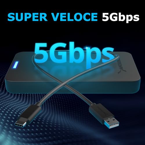 [Trasferimento Dati] con USB 3.2 Gen 1, permette una velocità massima fino a 5 Gbps, il trasferimento di film, foto, musica e dati avverrà in pochi secondi. Supporta il protocollo UASP ed è retrocompatibile con USB 2.0 e 1.1.