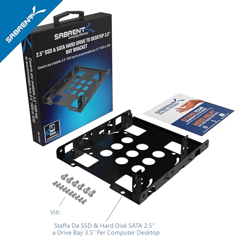 SABRENT Telaio per SSD/HDD da 2.5" a 3.5", Kit di montaggio per disco da 2,5" ad alloggiamento interno di 3,5", per SSD/HDD SATA interno, (BK-HDDH)