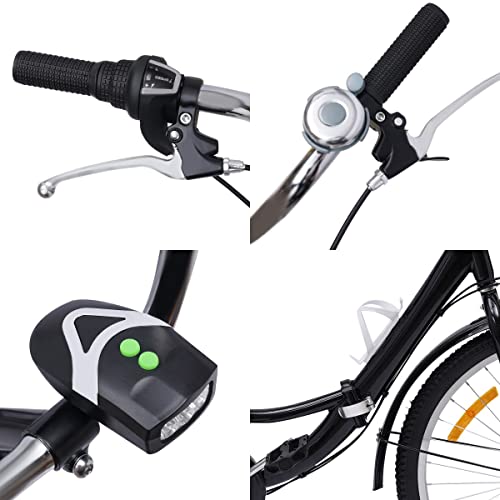 SABUIDDS Triciclo da 24 Pollici, per Adulti, 7 Marce, con Schienale e Cestello, Triciciclo Pieghevole, 3 Ruote, per Sport All'Aria Aperta, Colore Nero