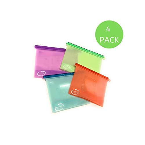 Estremamente facile da pulire e conservare: sacchetti riutilizzabili in silicone per alimenti, adatti a microonde, freezer e lavastoviglie. Per lavarli è sufficiente girarli al rovescio. Sacchetti con chiusura a zip riutilizzabili, di alta qualità.