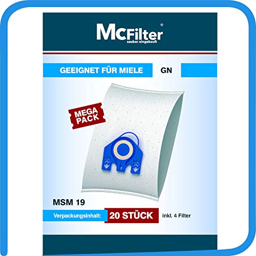 20 sacchetti per aspirapolvere adatti per Complete C3 Excellence & Complete C3 Excellence Ecoline Miele, chiusura automatica antiperdita, tipologia MSM 19 con filtro incluso