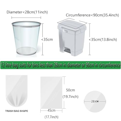 【Può essere utilizzato ovunque】 Questo piccolo sacchetto per rifiuti da 12 a 15 L può essere utilizzato per rifiuti domestici e rifiuti alimentari. Adatto per cucine, camere da letto, soggiorni, bagni, giardini sul retro, uffici e altri piccoli bidoni della spazzatura.