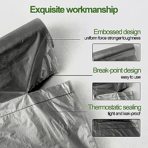 100 sacchetti per rifiuti biologici Breakpoint: concentrati sui dettagli: il design breakpoint impedisce che si strappino durante la rimozione dei sacchetti della spazzatura. Gli angoli sono solidi, antiforatura e a prova di perdite. Una confezione da 100 bustine (20 x 5 rotoli) può essere utilizzata per un mese se una famiglia li usa 3 volte al giorno.