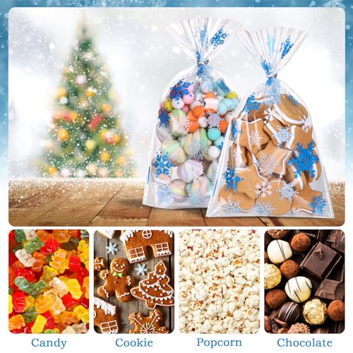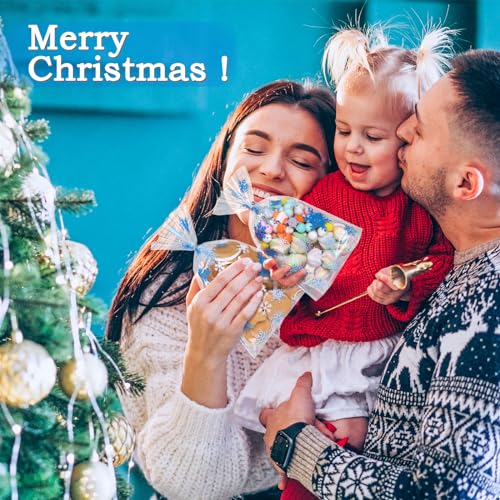 LA CONFEZIONE INCLUDE: Il design a fiocco di neve blu e bianco è pieno di allegria natalizia e contiene 100 sacchetti trasparenti e 100 lacci argentati per sigillare i sacchetti di biscotti. Abbastanza da utilizzare per le feste o a casa.