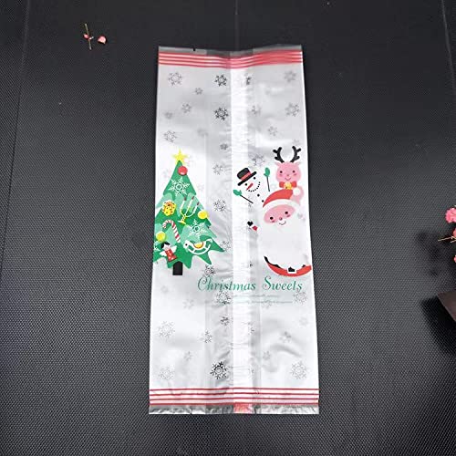 Sacchetti di biscotti di Natale 50 pezzi sacchetti per regali traslucidi con adesivi Sacchetti di plastica di albero di Natale per torta Caramelle Snack al cioccolato Panetteria Pane Cupcake Ciambelle