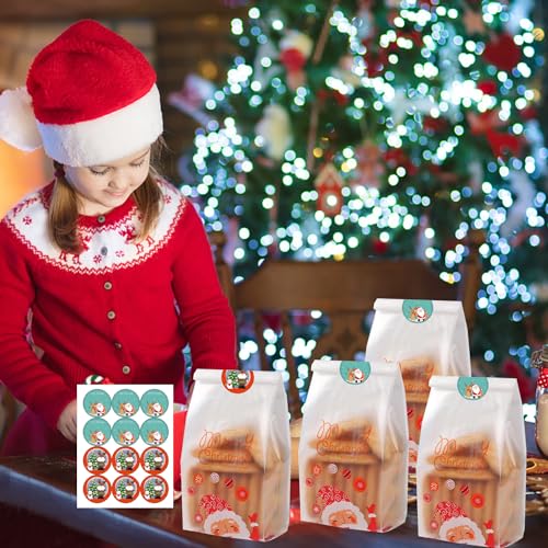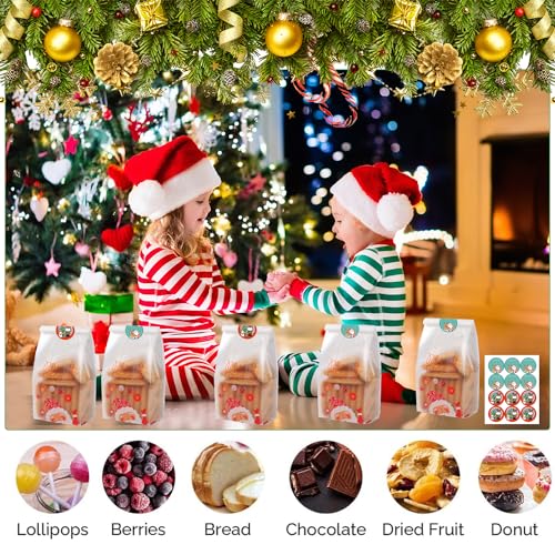 Sacchetti di Biscotti di Natale, 50 Pezzi Sacchetti Regalo Natale con Adesivi, Sacchetti Caramelle Natalizi, Sacchetti di Cellophane Natalizio Trasparenti, per Natale, Nozze, Festa Compleanno