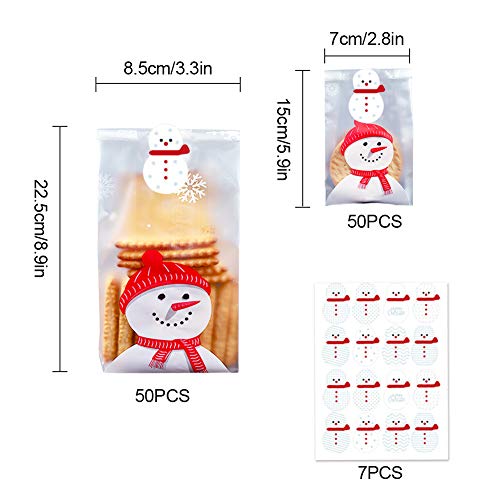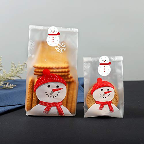 【Eleganti sacchetti di caramelle】100 pezzi di borsa per biscotti caramelle da forno stampata con Pupazzo di neve e fiocco di neve, design trasparente, carino e semplice, facile da vedere quali oggetti all'interno.Classici elementi e colori natalizi, carini e vivaci, aumentano l'atmosfera festiva natalizia