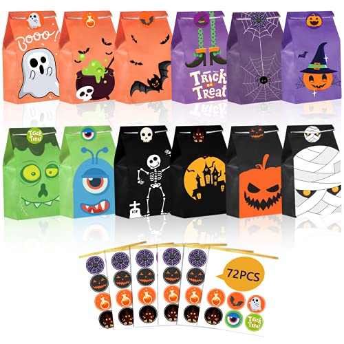 Sacchetti di caramelle di Halloween 72 Pezzi 12 disegni 22X12X8 CM Piccolo dolcetto o scherzetto di Sacchetti di Halloween Sacchetti di Carta con adesivi sacchetti regalo di halloween