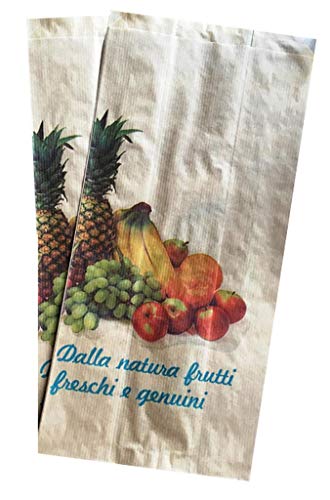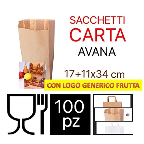 C.N. SACCHETTI DI CARTA AVANA CON LOGO GENERICO FRUTTA 17x34 cm 100 PZ SACCHETTO IN CARTA KRAFT MARRONE PER ORTOFRUTTA FRUTTA e VERDURA