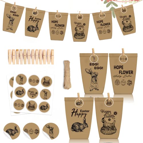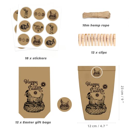 Sacchetti di Carta per la Pasqua, Sacchetti per Regali per la Pasqua, 12 Sacchetti Pasqua con 18 Adesivi + Clip, Sacchetti di Carta Fai da Te Pasquali, Sacchetti di Carta Kraft per Regali per le Feste