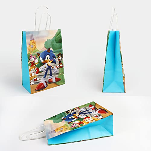 【Borsa regalo multifunzionale】 Borsa regalo Sonic The Hedgehog Sacchetti di carta per giocattoli carini, generi alimentari, caramelle, picnic, feste di compleanno per bambini, generi alimentari, baby shower, matrimoni e tea party, piccoli giocattoli, attività artigianali e artigianali.