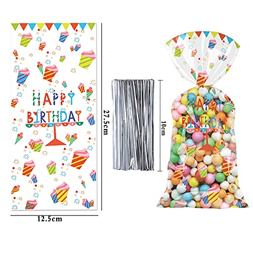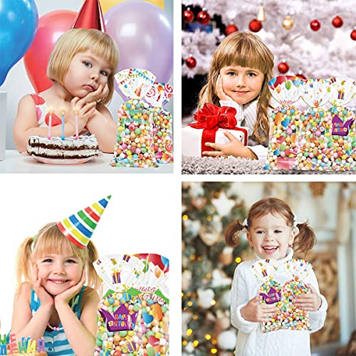 【Materiale】 - Il sacchetto di caramelle di cellophane di compleanno è realizzato in plastica OPP, inodore, non tossico, sicuro, resistente e non facile da rompere.